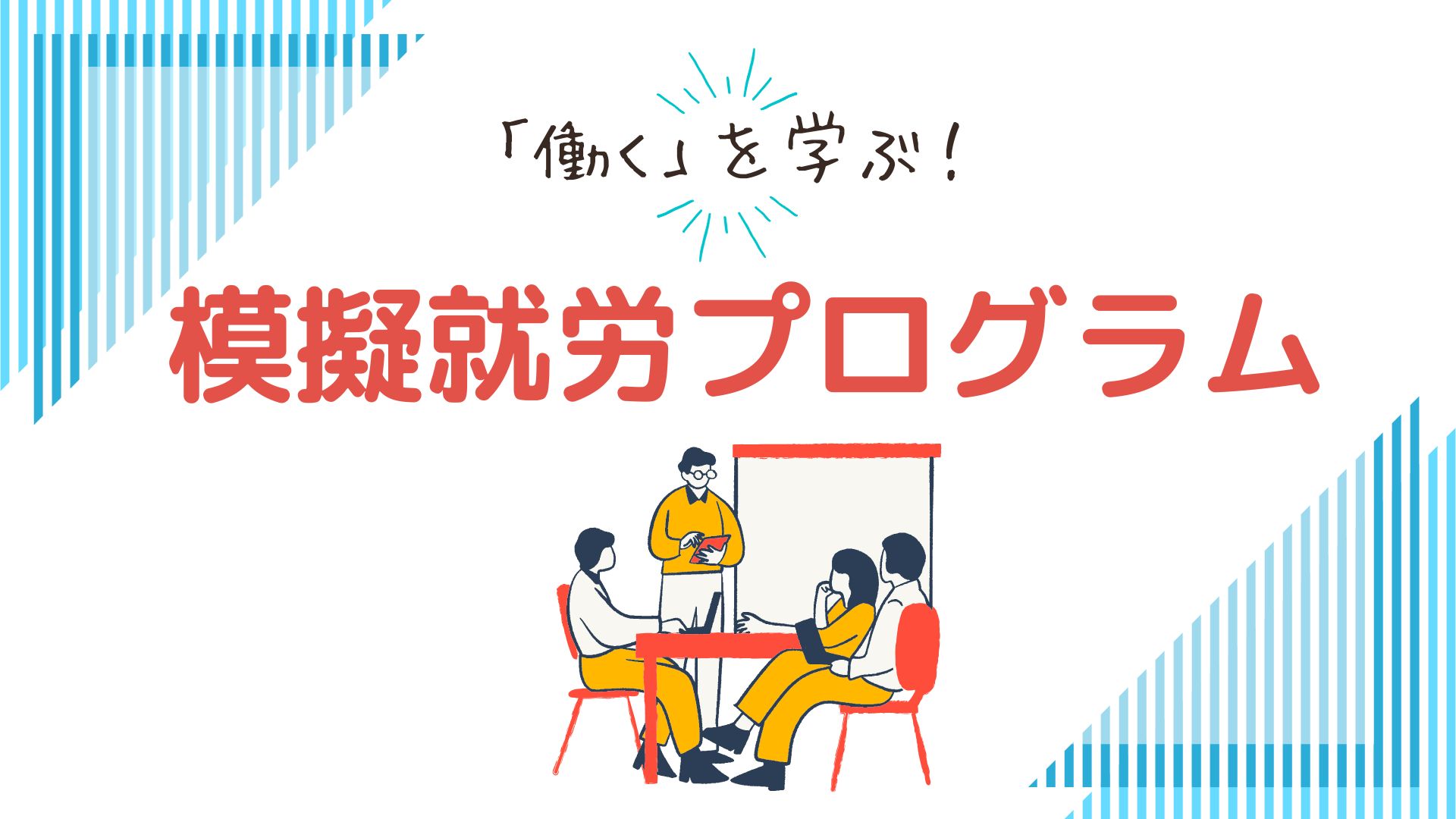 就労(就職)に向けた準備とは、「就労に必要なトレーニング(例:ビジネスマナー、PCトレーニング、グループワーク)」を行うだけでなく、「職場見学・実習等」を経験することでご自身に合った業種や職種、職場はどんな環境なのかを考えたり、「就職活動に必要なサポート(「応募書類作成のアドバイス」や「模擬面接を通した面接対策」など)」を受けながら、就職活動を進めていくことを指しております。