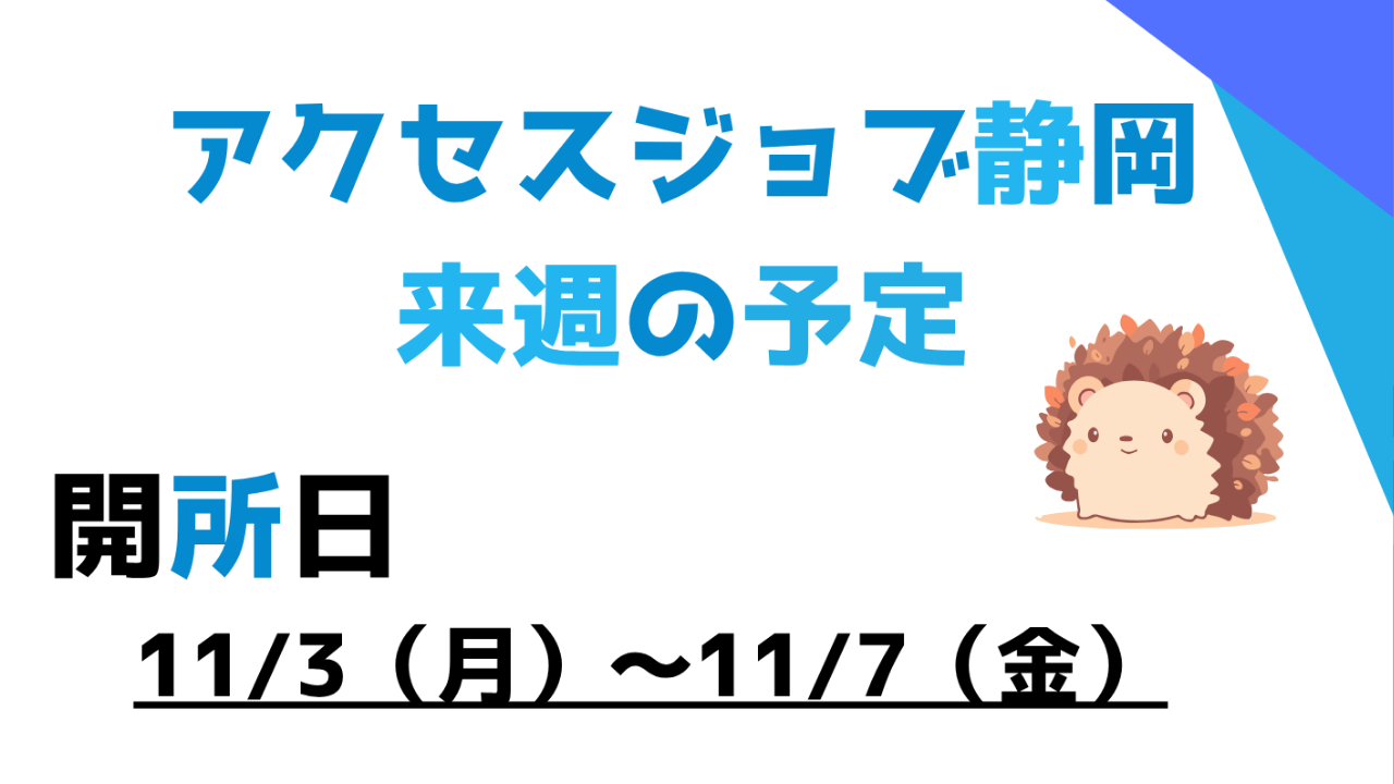 - 【アクセスジョブ静岡】来週の予定(11/3~11/7)
