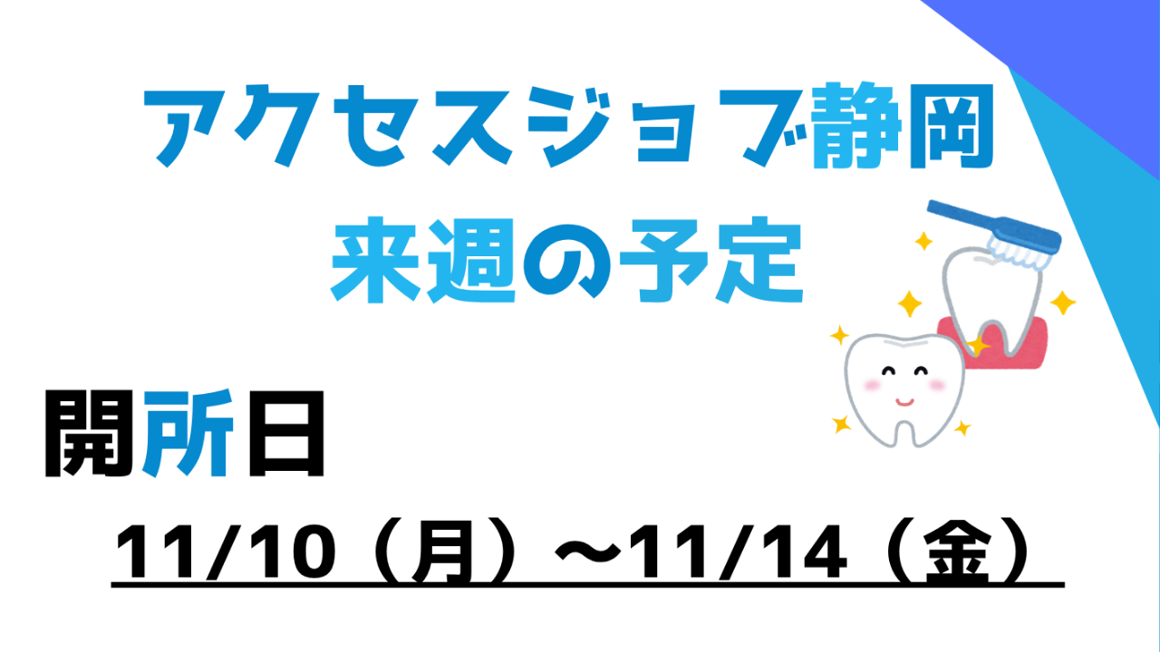 - 【アクセスジョブ静岡】来週の予定(11/10~11/14)