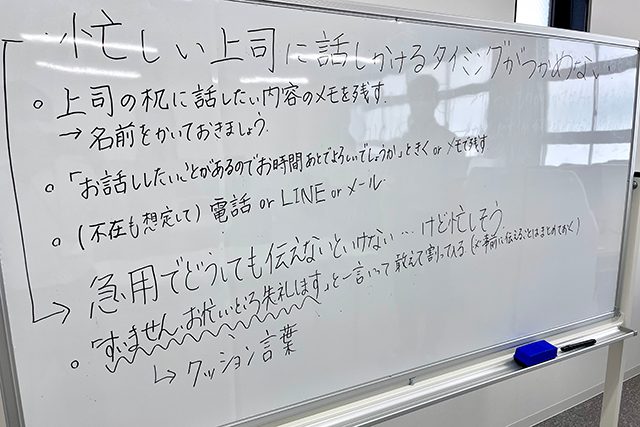 たとえば、ある日のテーマは「忙しい上司に声をかけるタイミング」。