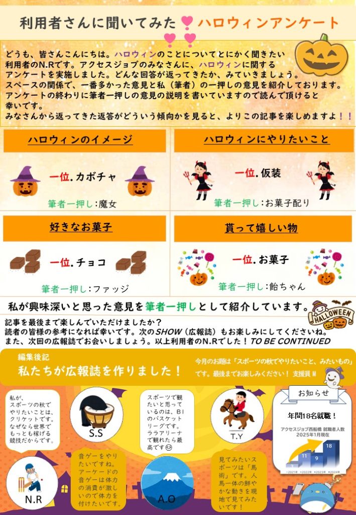 アクセスジョブ西船橋に通所している利用者さんが、企画・立案を有志で集まり作成をしております