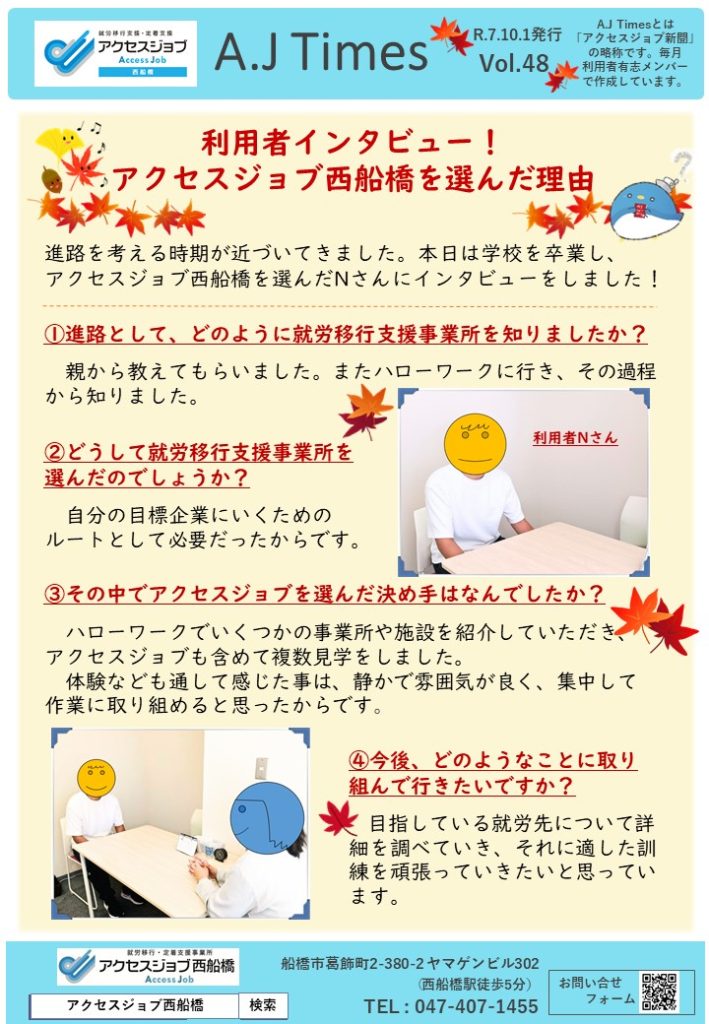 利用者様インタビュー!アクセスジョブ西船橋を選んだ理由【広報誌10月号】