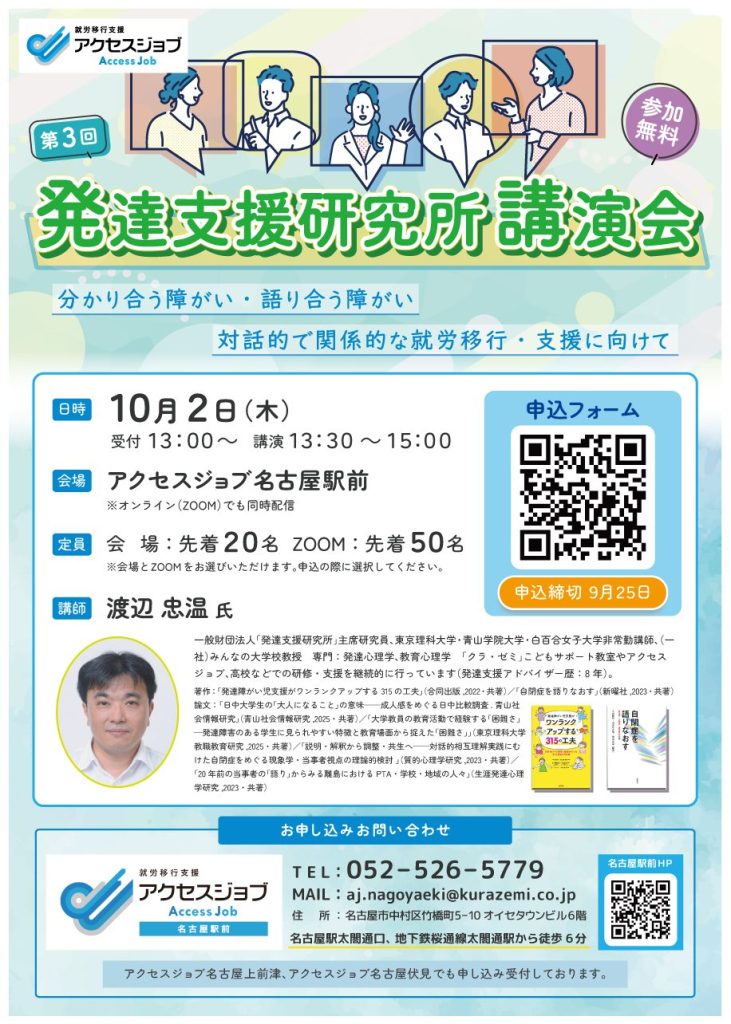 就労移行支援事業所のアクセスジョブ > ブログ > 学びとつながりの時間に✨発達支援研究所講演会✨