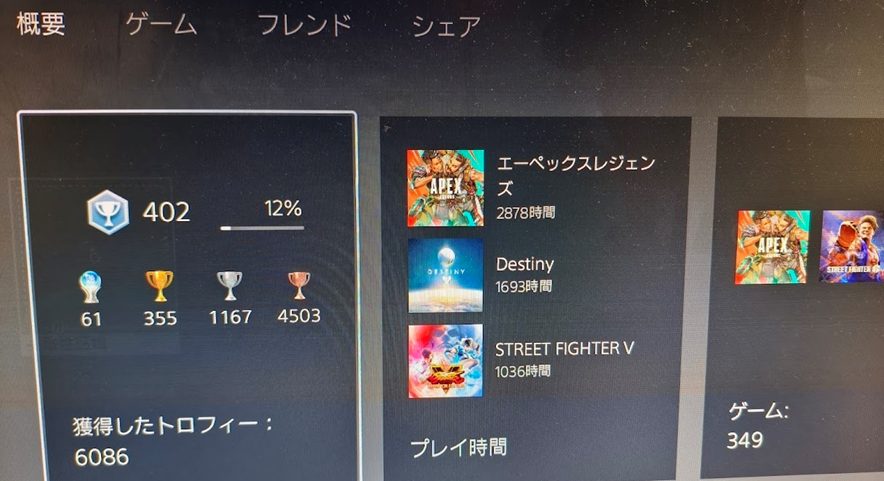 プレイステーションでトロフィーを集めることも趣味としていました。