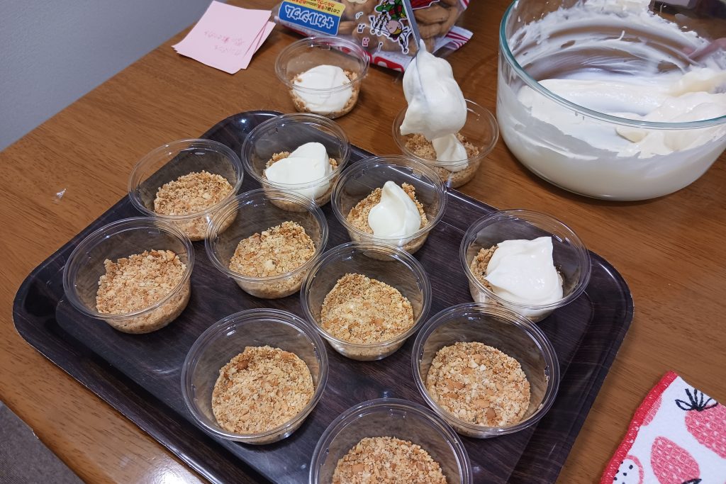 みんなで作ったチーズケーキもほどよい甘さで完成し、楽しいひとときになりました。