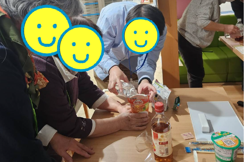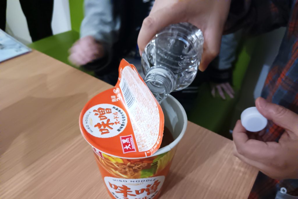 まずは、お湯が使えない事態を想定し、カップラーメンを水で作ってみます。