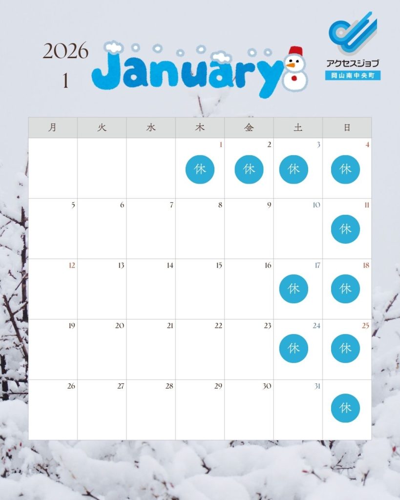 年末のご挨拶と1月開所カレンダー