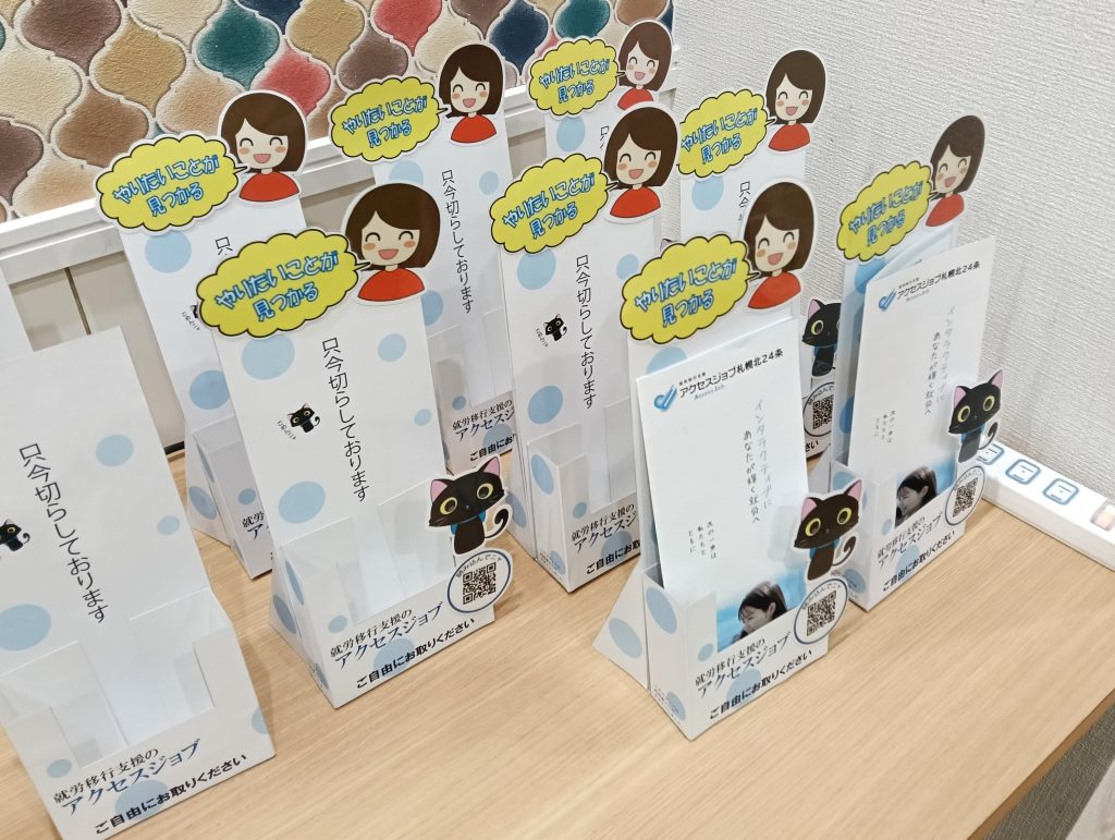 昨年末から制作が進んでいた、アクセスジョブ札幌の新しいチラシとパンフレットスタンドが