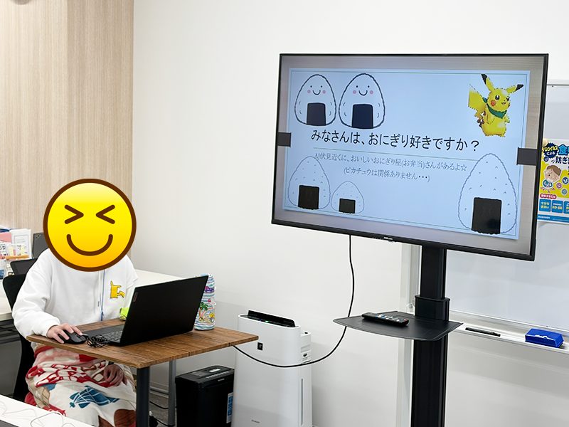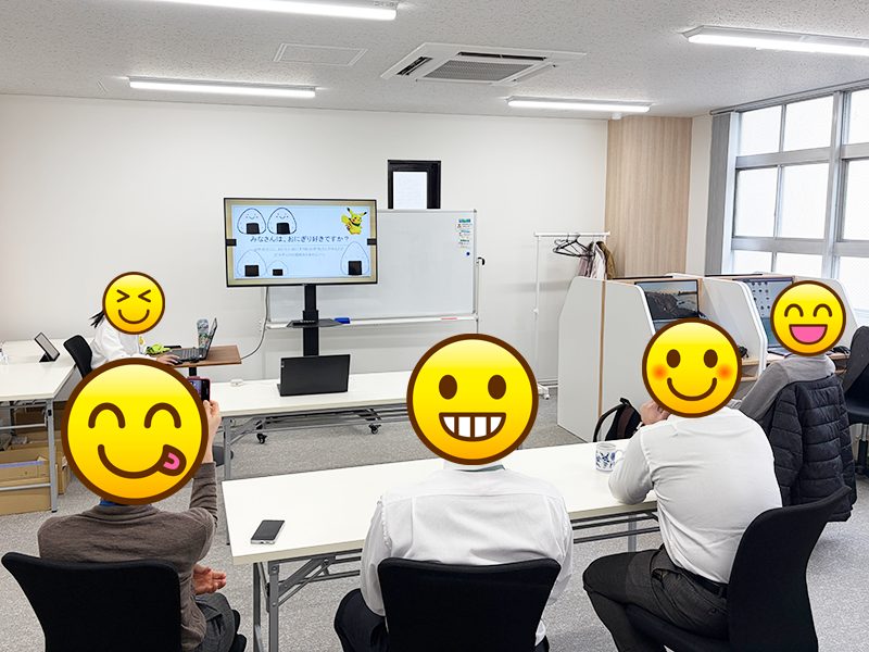 聞いている側も思わず興味を持ってしまう、どんなおにぎりなのか、美味しそうと、思わせるお話しで、事業所に通所され、その場で参加されている方はもちろん、在宅訓練されている方もZOOMを繋いでオンラインで参加いただき、皆さんからのリアクションや時折笑いも起きるなど、終始和やかな雰囲気で皆さん楽しそうに参加されていました。