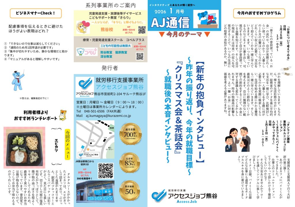 広報誌1月号発行『#利用者様の声 新年の抱負インタビュー』 『#卒業生の声 就職後の本音インタビュー』|就労移行支援事業所アクセスジョブ熊谷