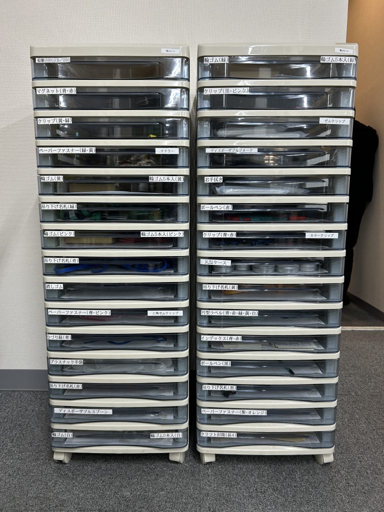 それぞれの引き出しにはさまざまな商品が仕分けされており、2人1組になってその商品を1人が注文書通りに正確にピッキングし、もう1人が検品するというものです。