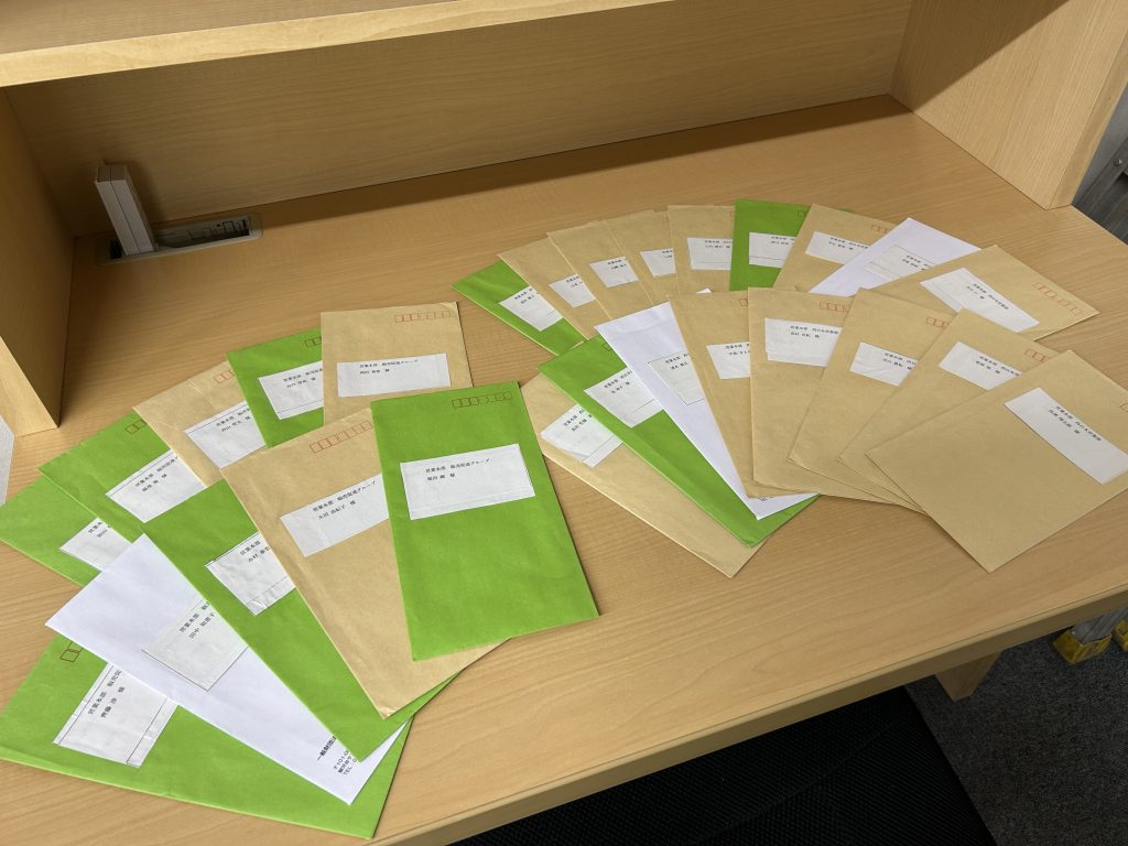 数名でグループを組んでどのくらいの時間で400通の郵便物を仕分けることができるか、