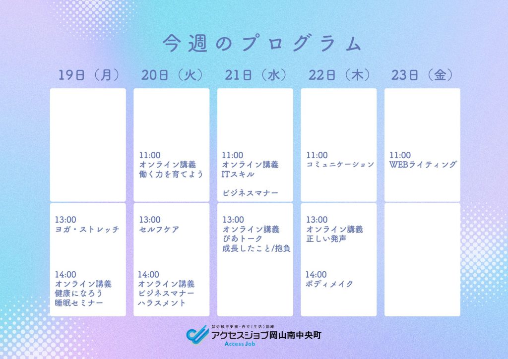1月19日~23日プログラム予定表|アクセスジョブ岡山南中央町