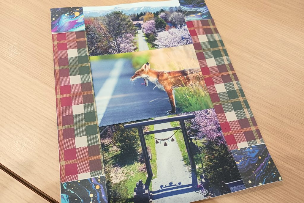 利用者Sさんの作品、写真の素材を沢山使っていて、美しく配置しています!