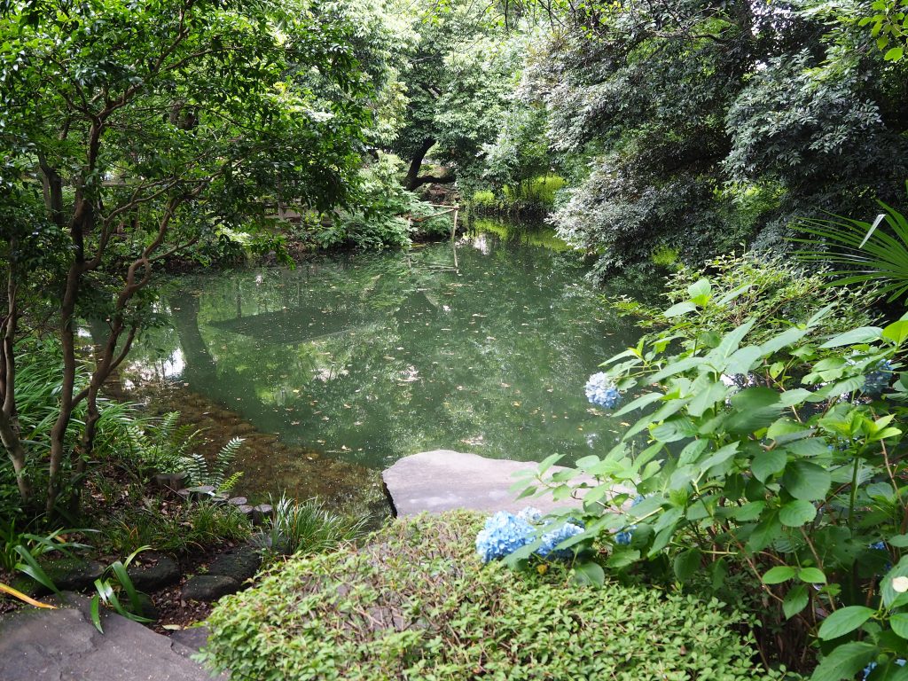 元和9年(1623)、荒川の洪水により当園の西方にあった土手(北条堤)が切れて池が生じたといわれ、その池は清らかな水が湧き出るので「玉の池」と呼ばれ、この湧き水が、星川の源となりました。澹如翁が、ここに別邸を設け、「玉の池」を中心に竹木を植え、名石を集めて庭園としました。