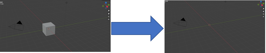 1.まず、ソフトを起動させたら画面上にある立方体を削除します。