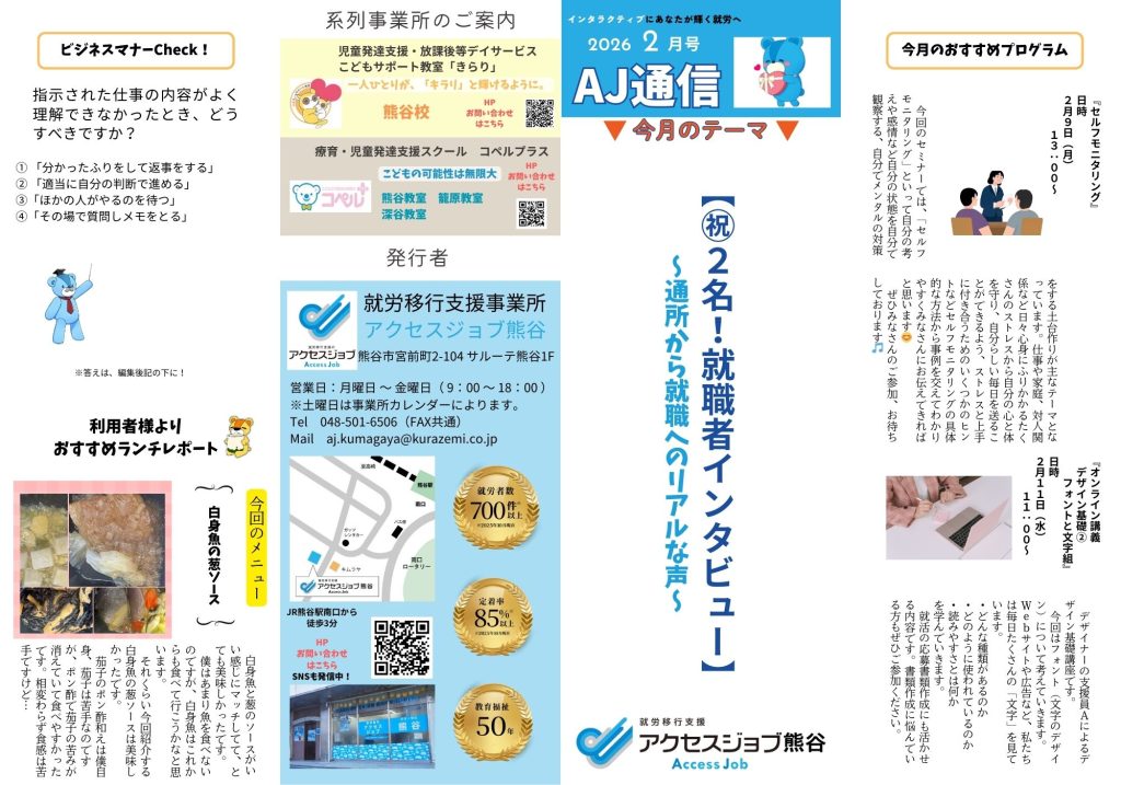 広報誌2月号発行『㊗2名!就職者インタビュー』 |就労移行支援事業所アクセスジョブ熊谷