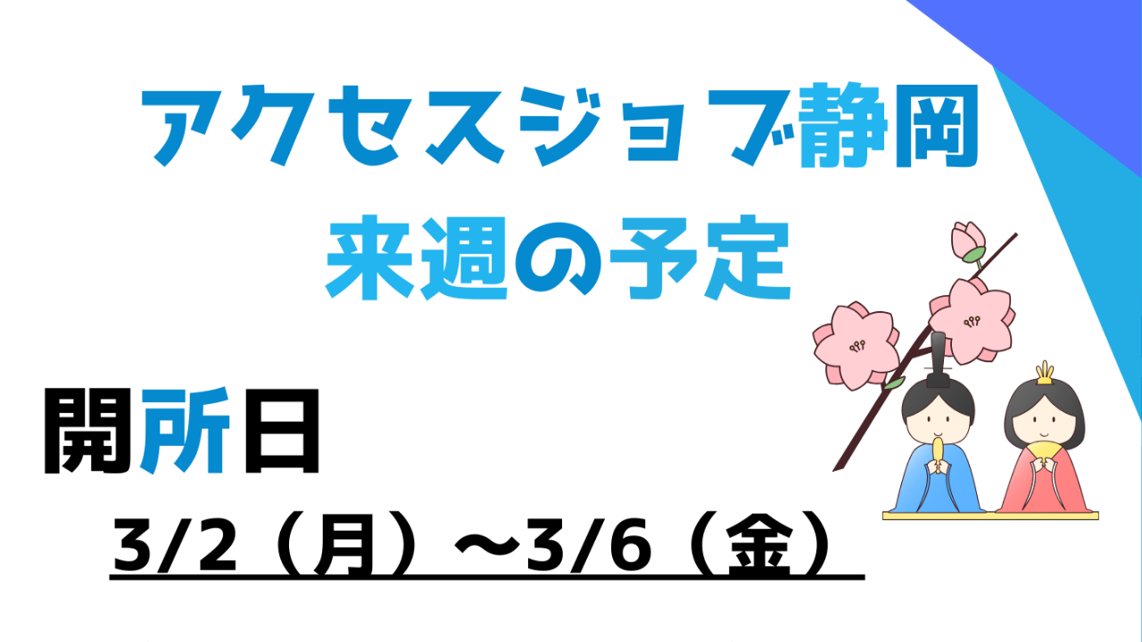 【アクセスジョブ静岡】来週の予定(3/2~3/6)