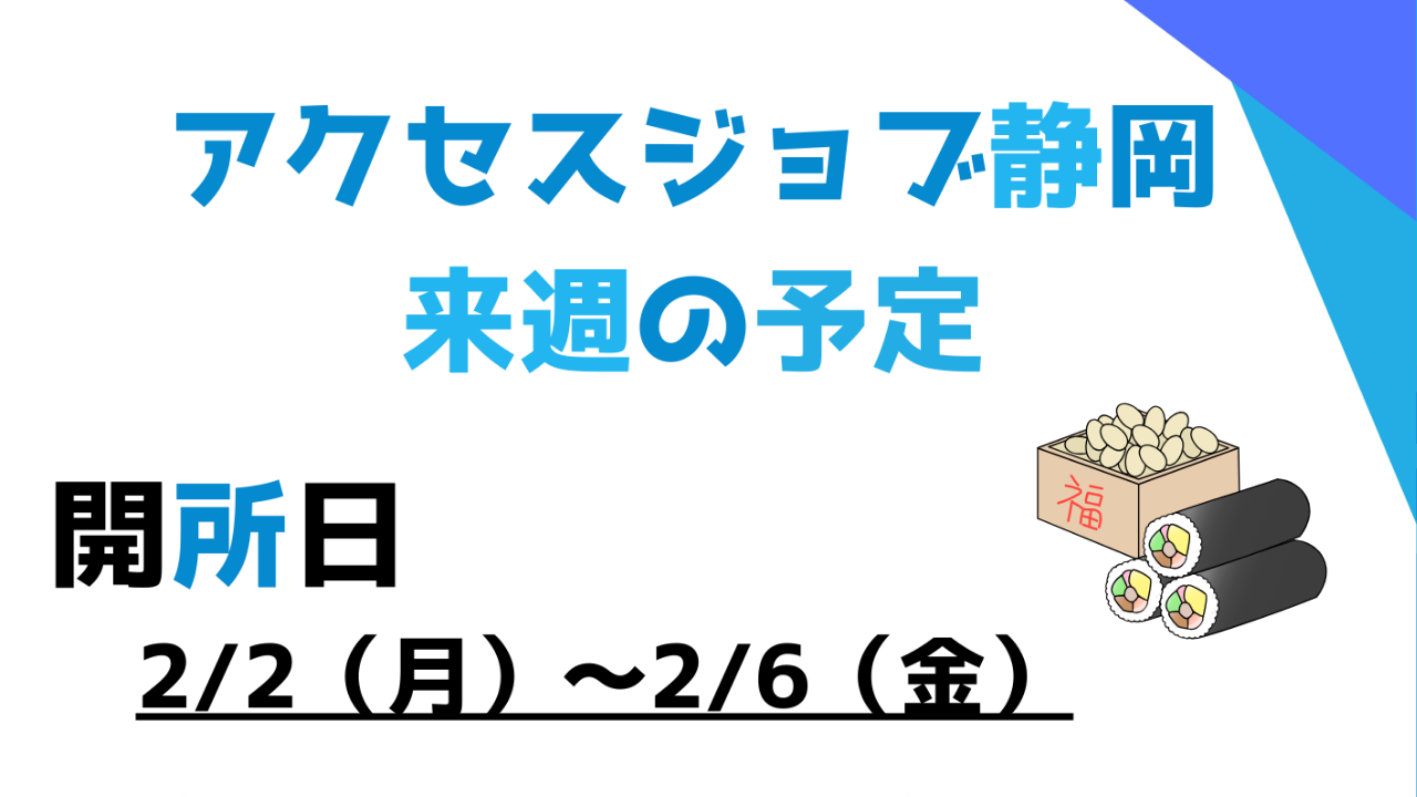 - 【アクセスジョブ静岡】来週の予定(2/2~2/6)