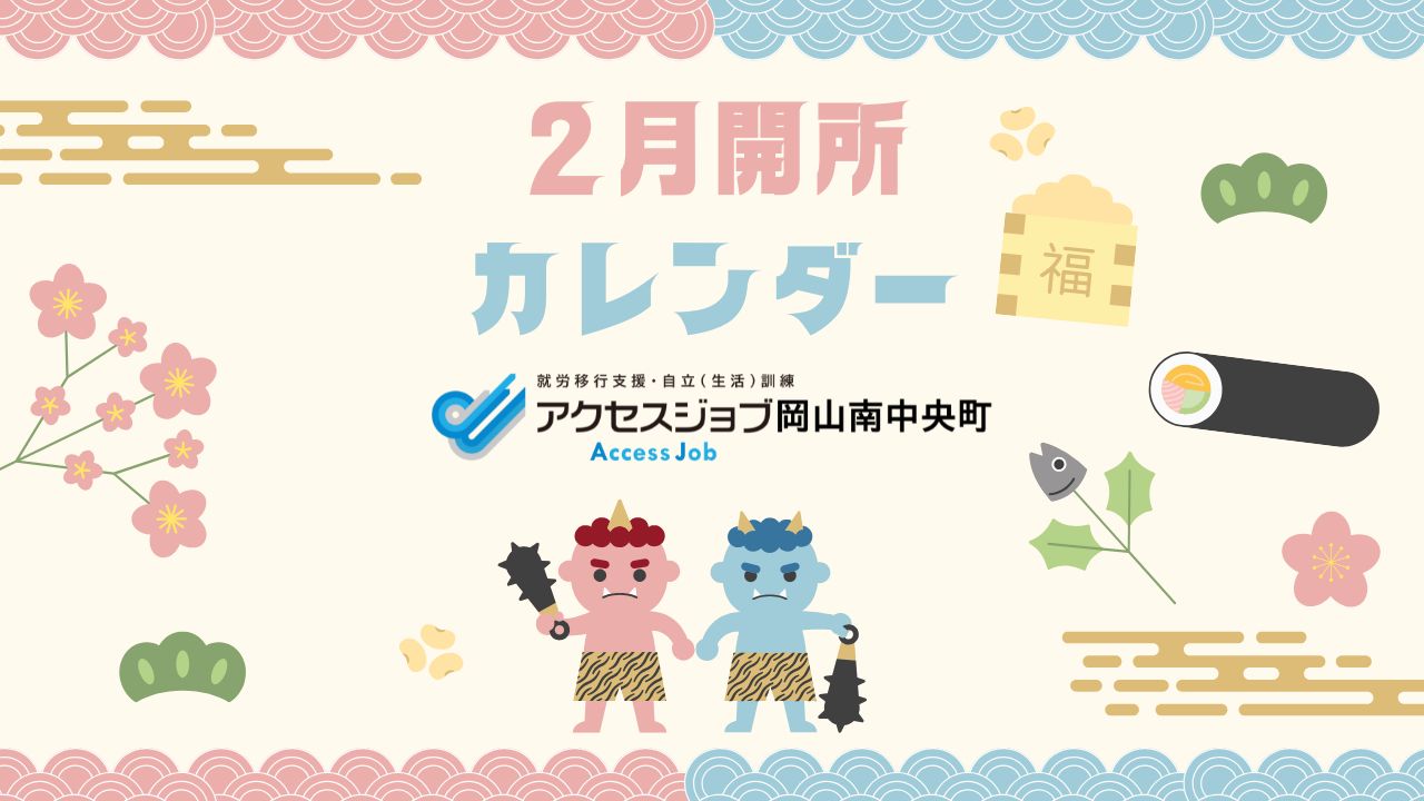 - 2月開所カレンダー|就労移行支援事業所アクセスジョブ岡山南中央町