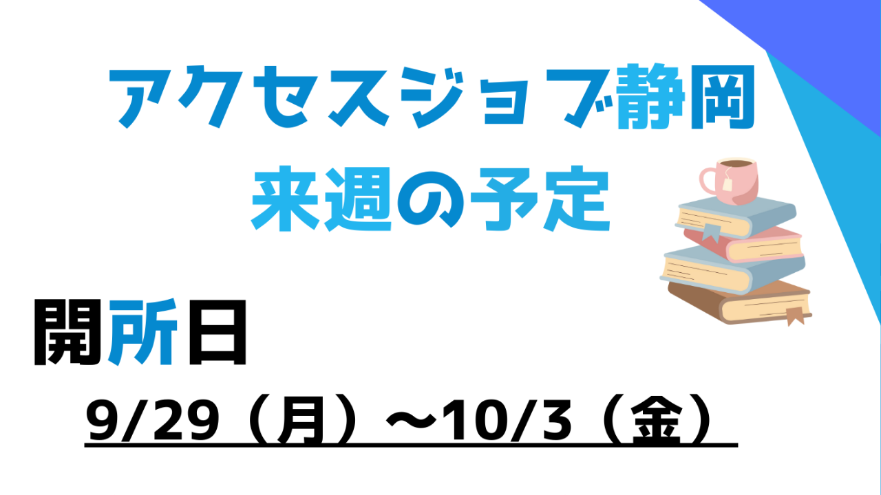 - 【アクセスジョブ静岡】来週の予定(9/29~10/3)