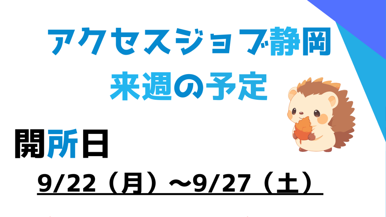 - 【アクセスジョブ静岡】来週の予定(9/22~9/27)