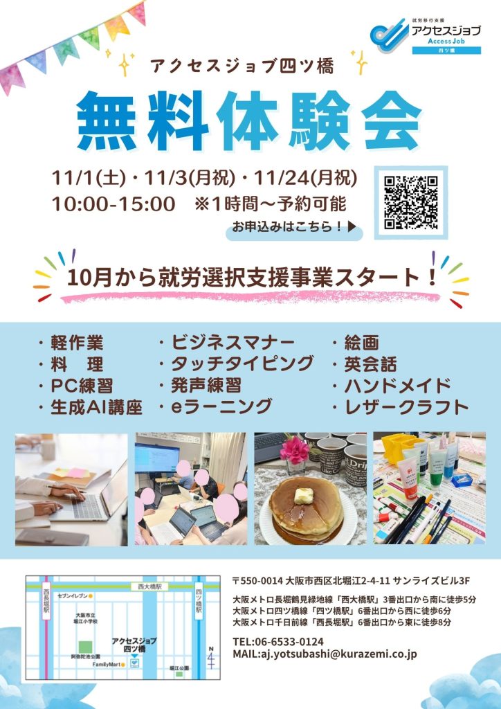 【アクセスジョブ四ツ橋】無料体験会
