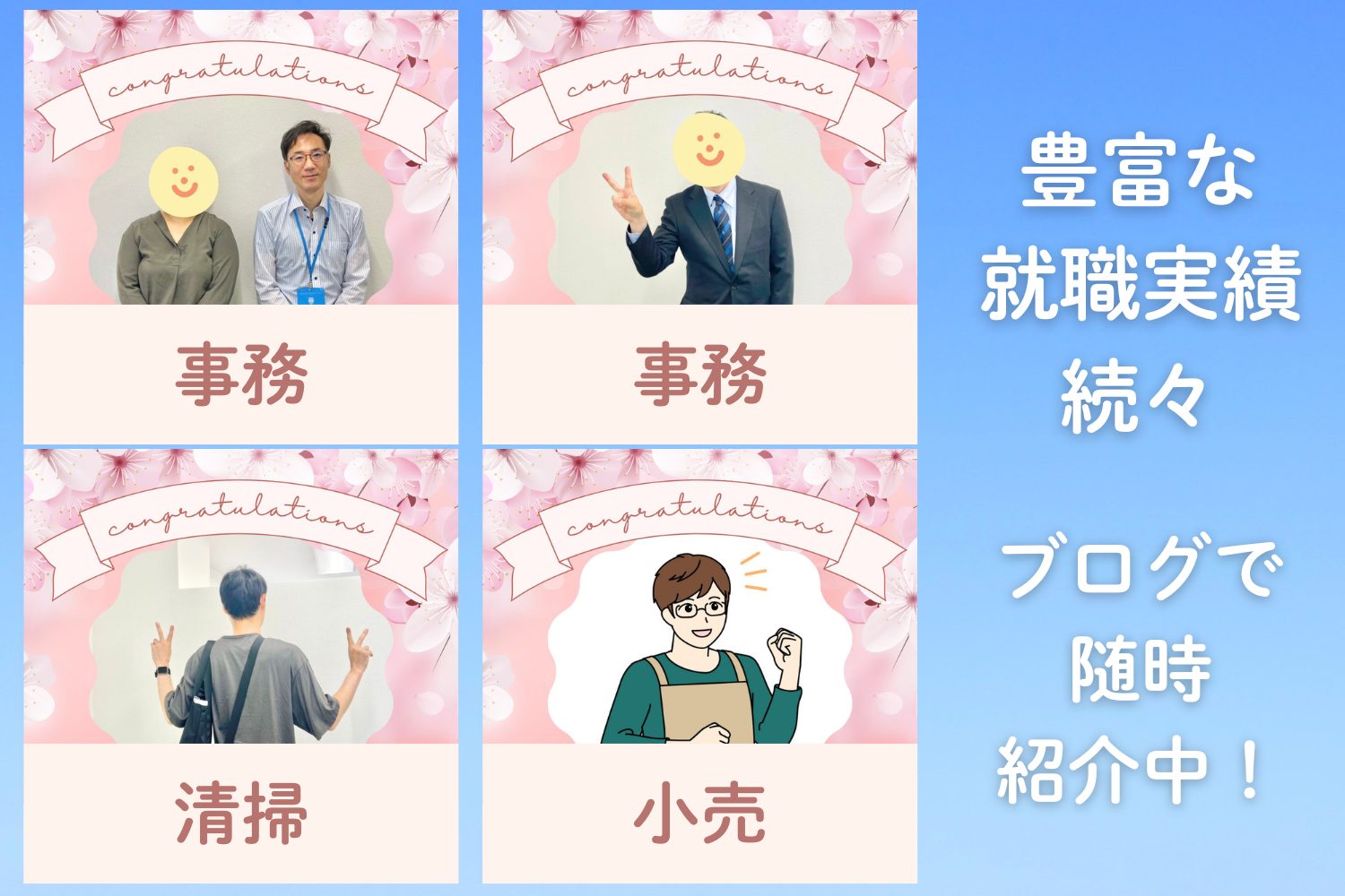 就職後も企業面談や相談で継続支援が充実しており、イベントに卒業生が訪れるほど安心して長く働ける環境を整えています。