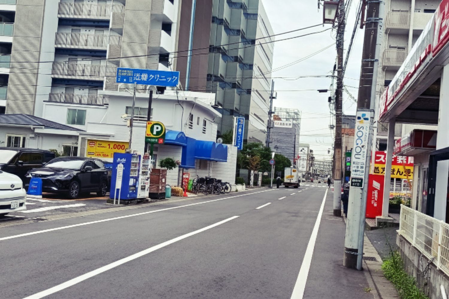 最初の焼肉屋が見えるまで真っ直ぐ歩きます